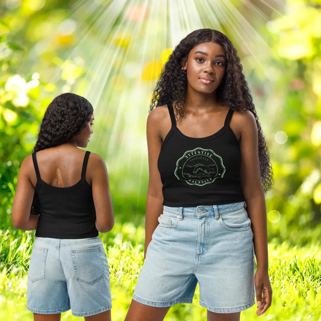 Finde deine Mitte mit unserem Micro Rib Tank Top, das durch den subtilen, spirituellen "Attentive Balance" Print verziert ist und deine Basics perfekt aufwertet. 🌸 Dieses figurbetonte Top ist aus weicher Airlume-Baumwolle gefertigt und besteht aus einem feingerippten Stoff, der sich deiner Körperform sanft anschmiegt und dir höchsten Tragekomfort bietet. 💖 Mit seinen dicken Trägern und dem mittellangen Schnitt ist es perfekt für Yoga, Meditation oder als leichtes Oberteil für sonnige Tage. ☀️ Das vielseitige Design lässt sich mühelos mit Jeans kombinieren oder unter einem Blazer für einen schicken Look tragen – ein wahres Statement-Piece für jede Garderobe! ✨